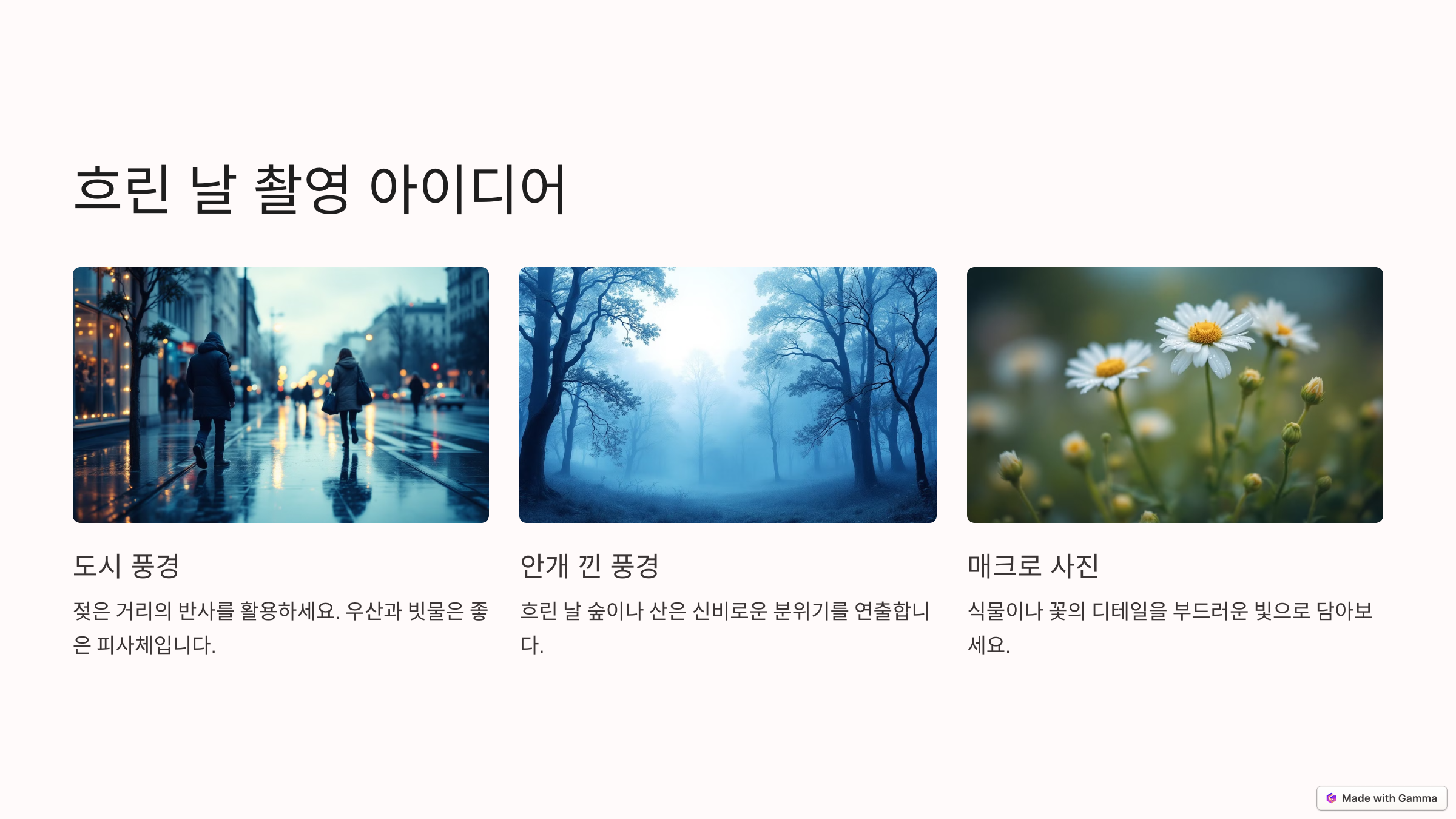 이제 흐린 날 사진을 잘 찍는 방법과 촬영 팁을 자세히 알아볼까요?