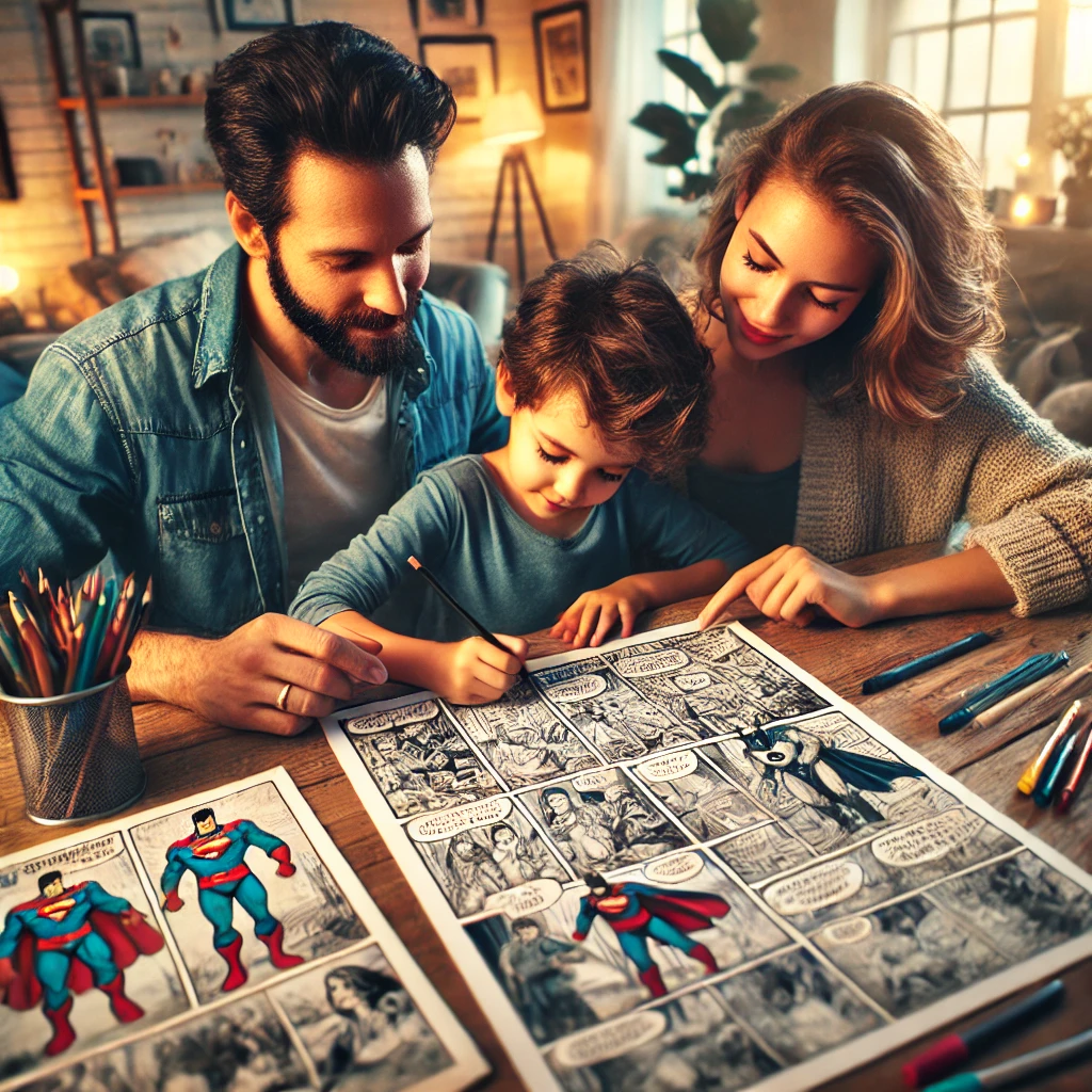 가족의 특별한 순간을 만화책으로 제작하는 것은 자녀의 상상력을 자극하고 가족만의 이야기를 기록할 수 있는 창의적인 방법입니다. 간단한 종이와 펜을 사용해 가족을 주인공으로 한 이야기를 만들어 보고, 이를 그림과 글로 표현해 보세요. 아이는 자신이 만든 캐릭터와 줄거리를 통해 창의력을 발휘하고, 부모는 아이의 아이디어를 격려하며 함께 이야기를 완성해 나갈 수 있습니다. 완성된 만화책은 가족의 추억을 시각적으로 남기는 도구가 될 뿐 아니라, 이를 읽으면서 가족 모두가 공감대를 형성할 수 있습니다. 만화책을 스캔하거나 디지털화해 인터넷에서 간단히 출판해보는 것도 좋은 방법입니다. 이렇게 제작된 가족만의 책은 세대 간 연결고리로 활용될 수도 있습니다.