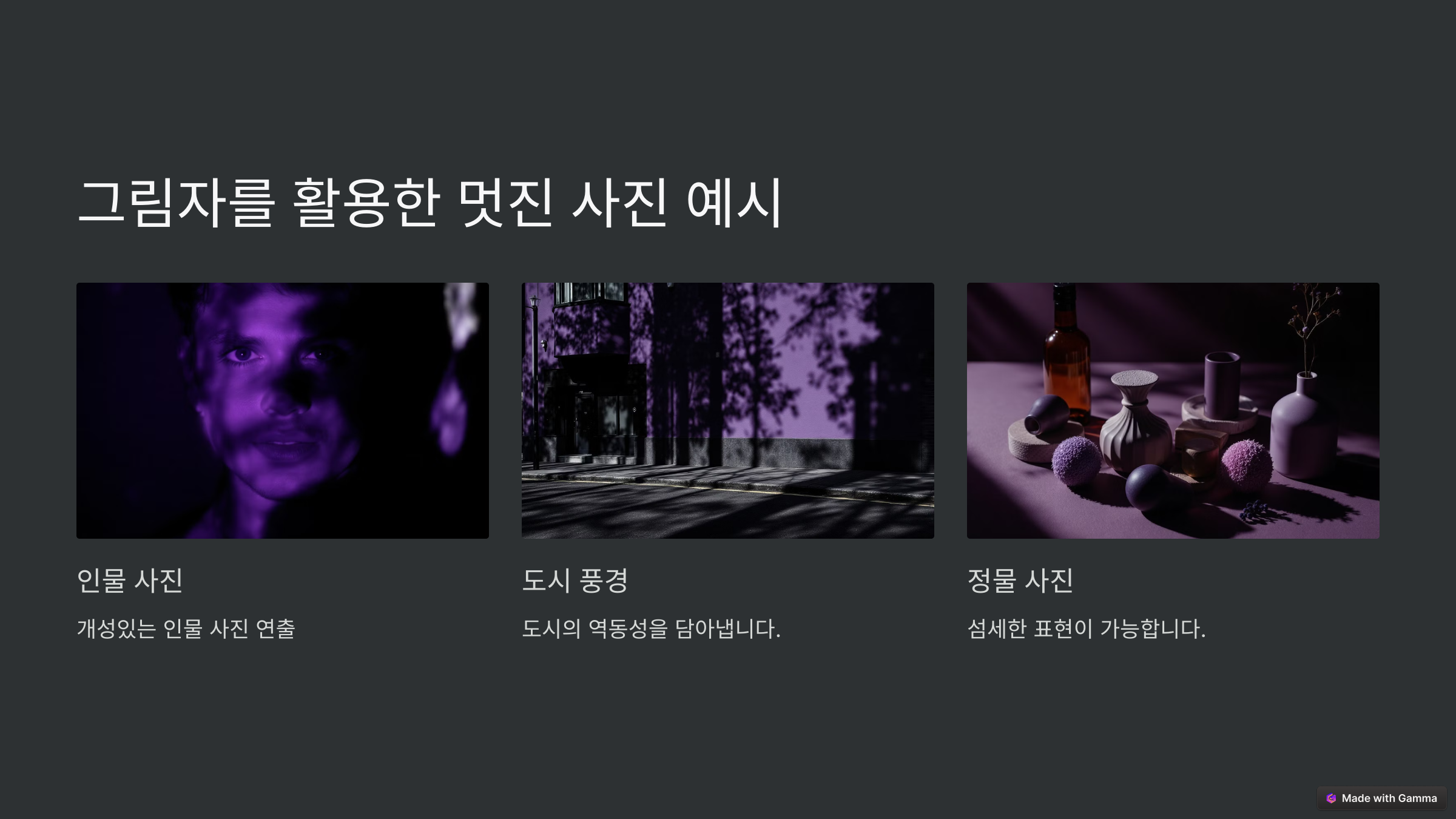이제 그림자가 어떻게 사진을 돋보이게 만들 수 있는지 알아볼까요?