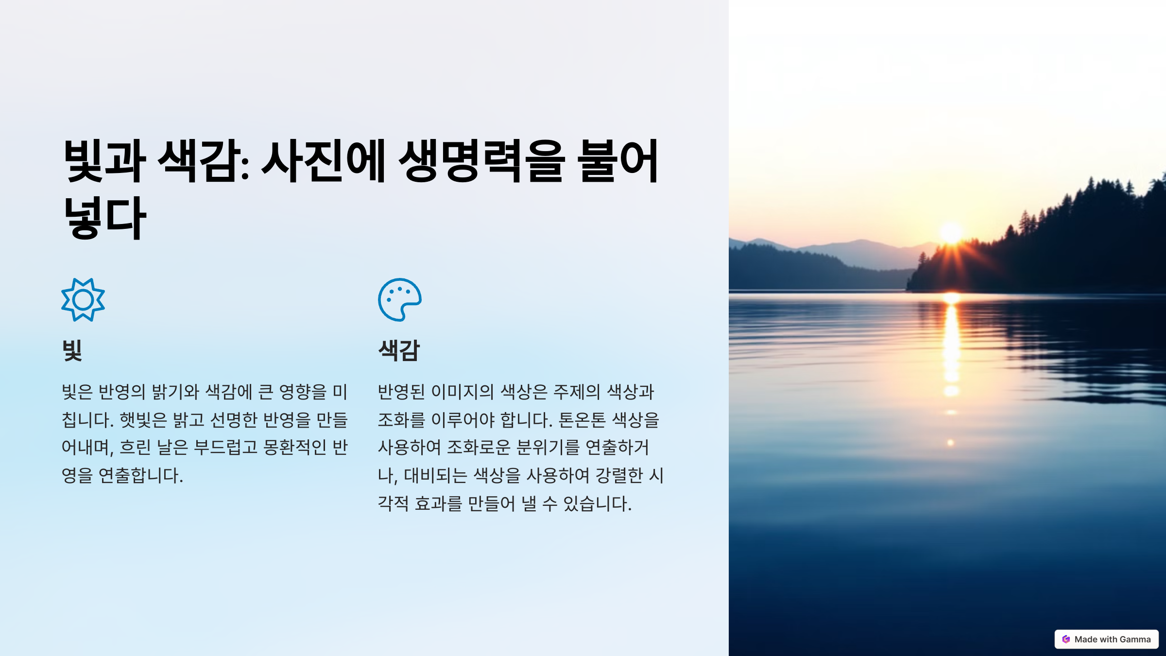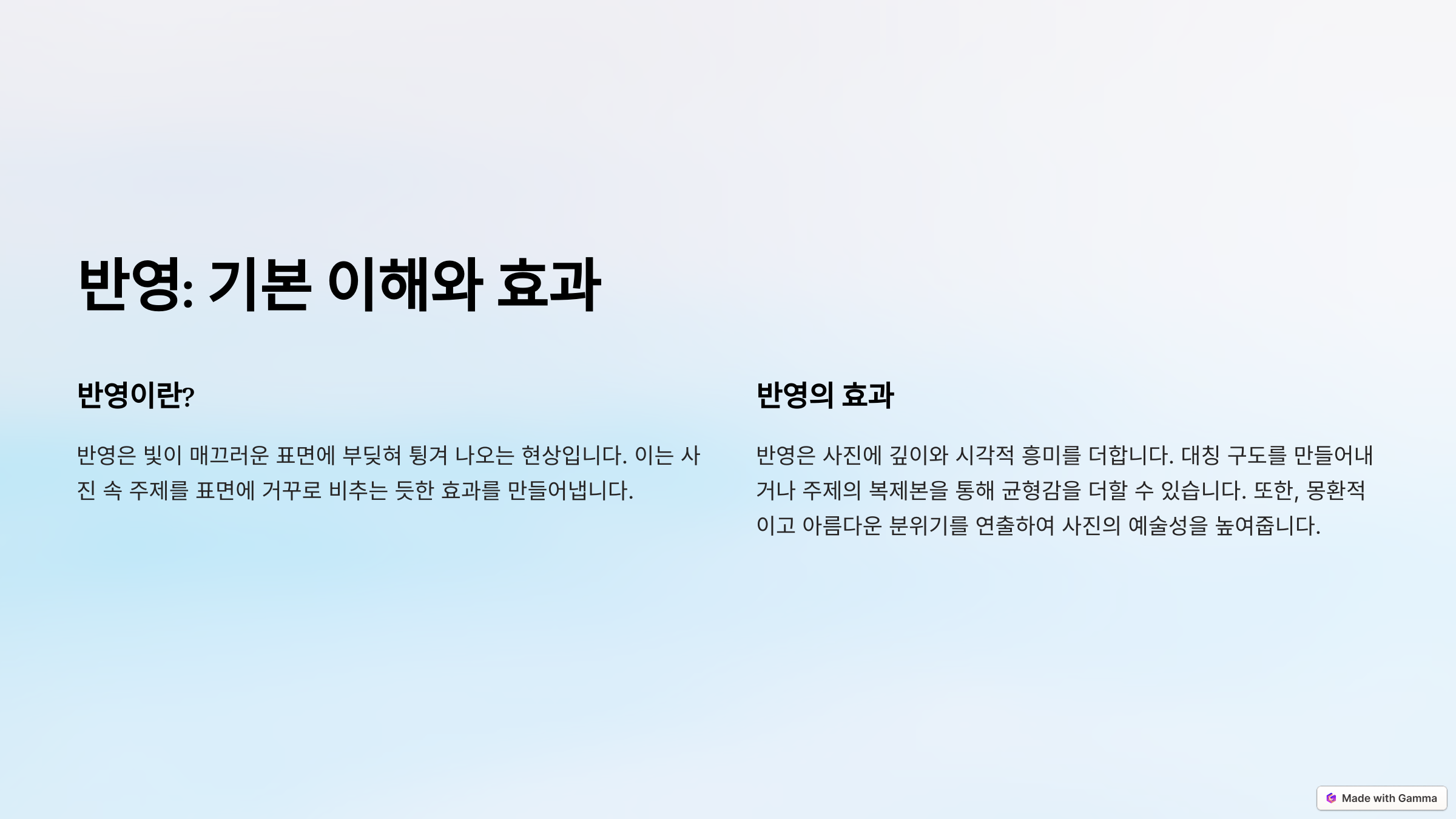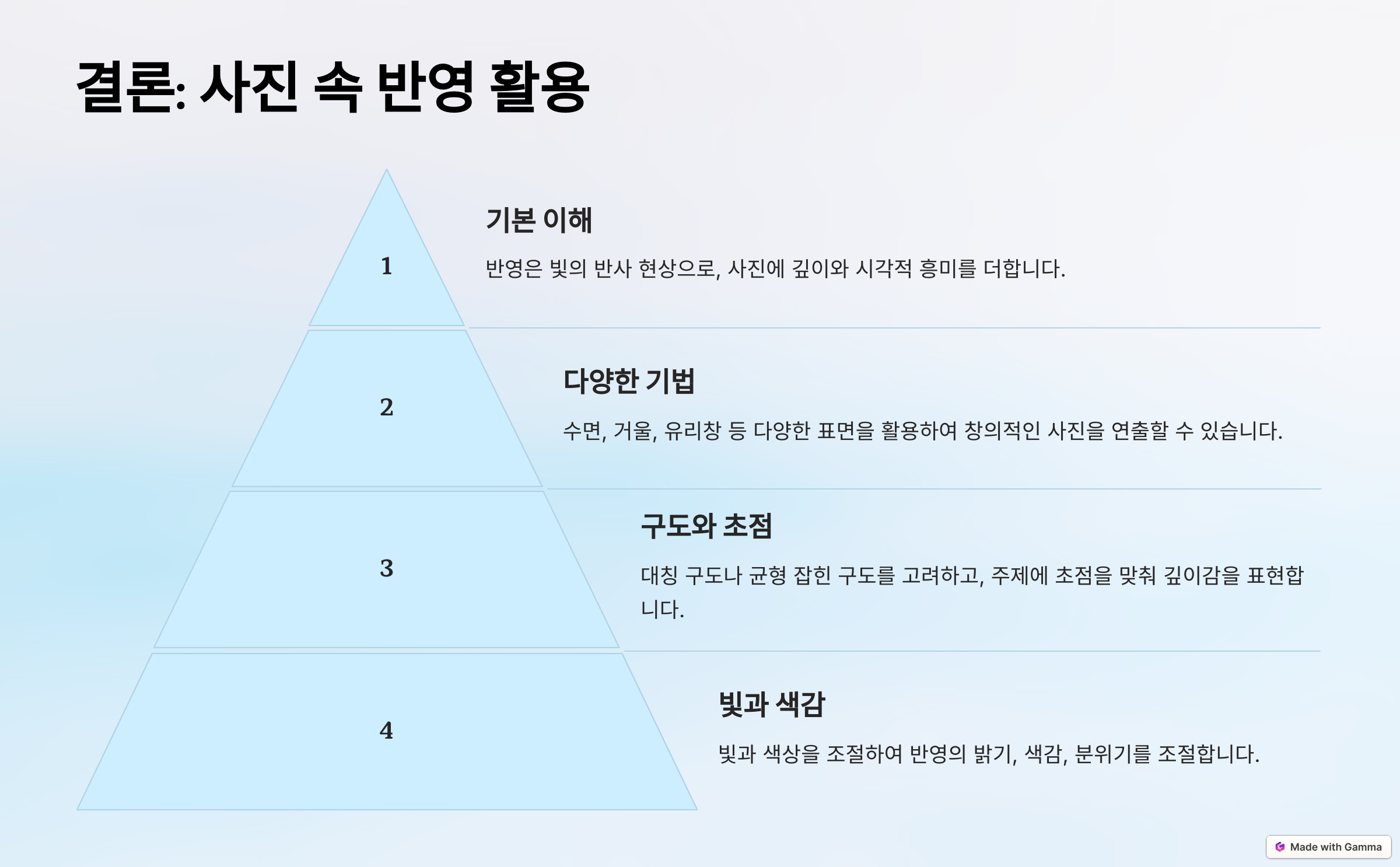 이제 반영을 활용해 사진을 더욱 돋보이게 만드는 방법을 알아볼까요?