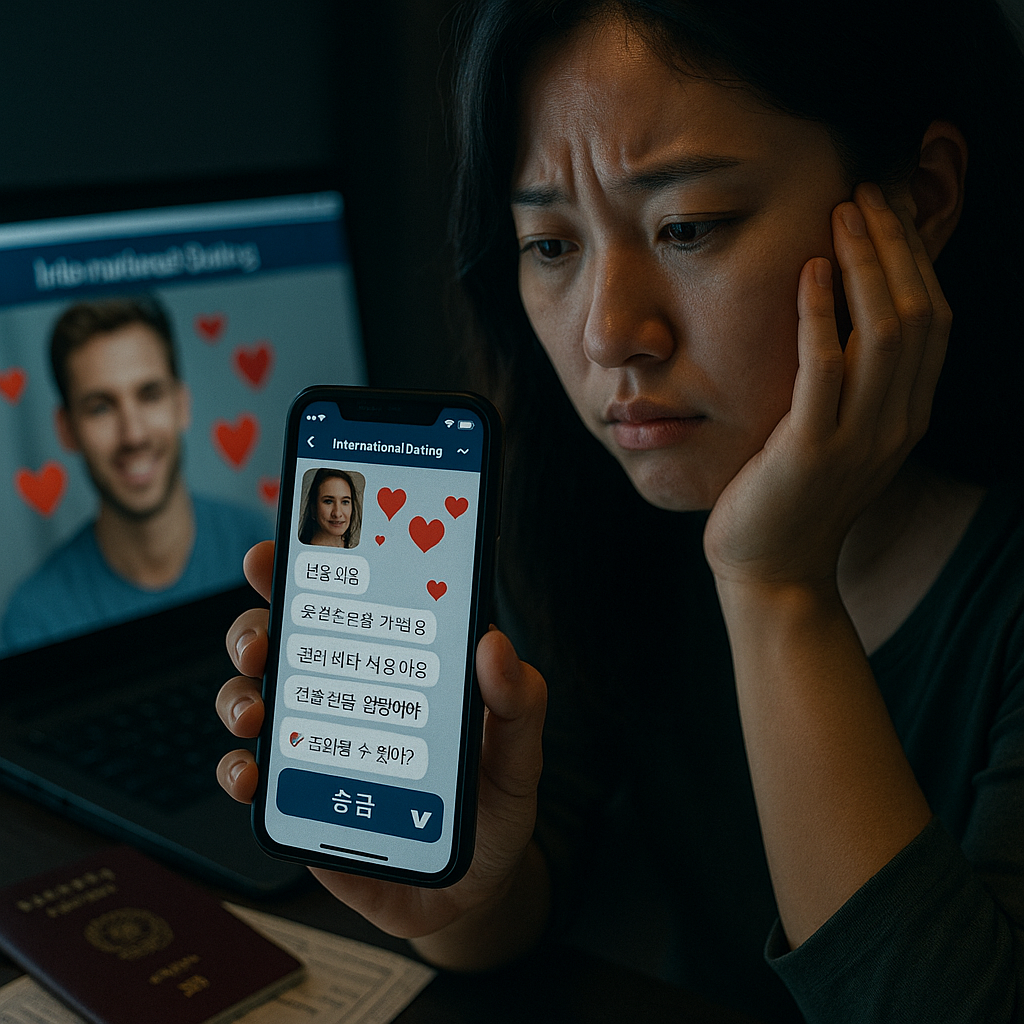 SNS나 채팅앱, 국제 데이팅 플랫폼에서 외모 좋고 달콤한 말로 접근한 뒤, 사랑을 가장해 금전을 요구하는 연애 사기예요. “비자 비용”, “통관료”, “긴급 상황” 같은 핑계를 자주 사용해요.